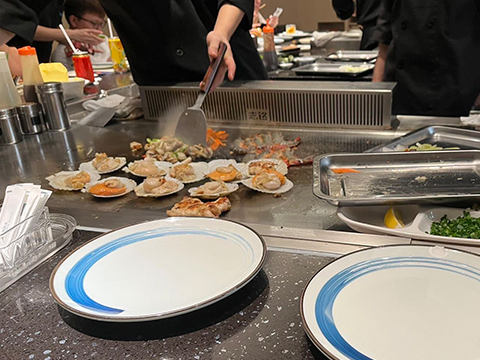 食材都是新鲜的,刺身,寿司,拉面,天妇罗,等等日料,铁板烧各种,鱼,牛肉等,哈根达斯雪糕这里也是可以吃,适合喜欢看厨师现场烹饪的食客。