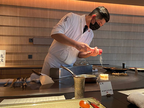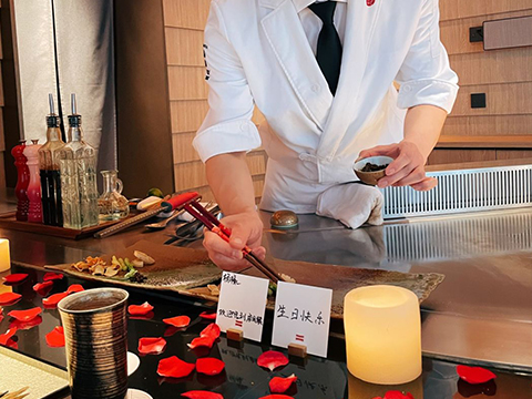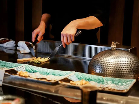 低调内敛铁板烧有种魔力,既让你欣赏铁板和刀叉的欢快舞蹈,又能看着激情四射的烈焰跳动,还能听着鲜嫩多汁的美食在铁板上滋滋作响。不同风味食材在眼前变成了美味的艺术。